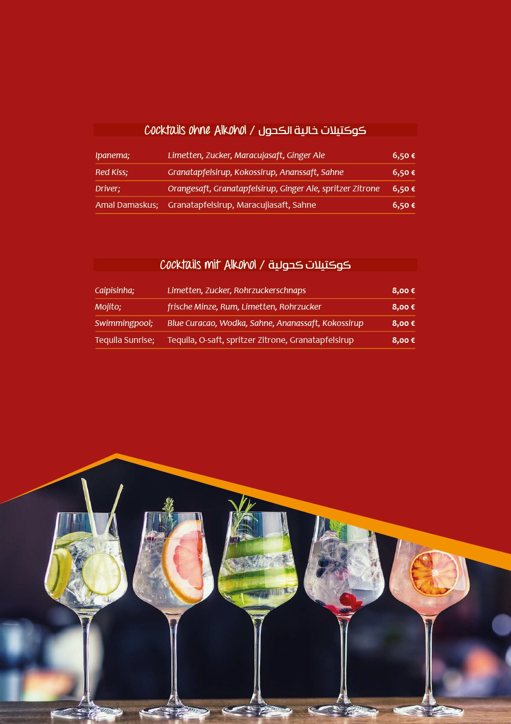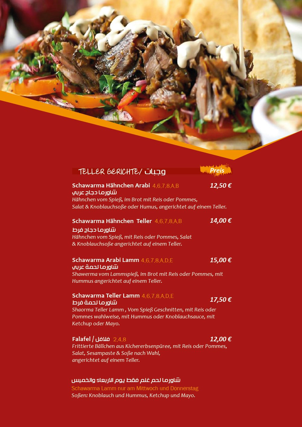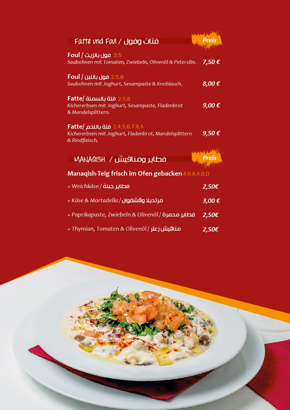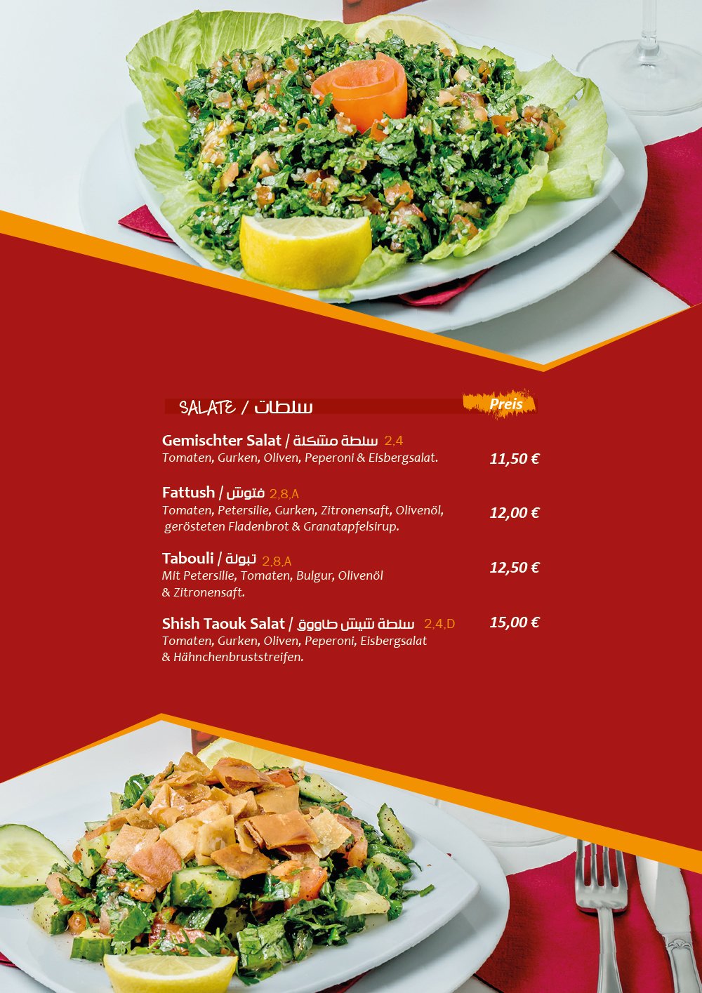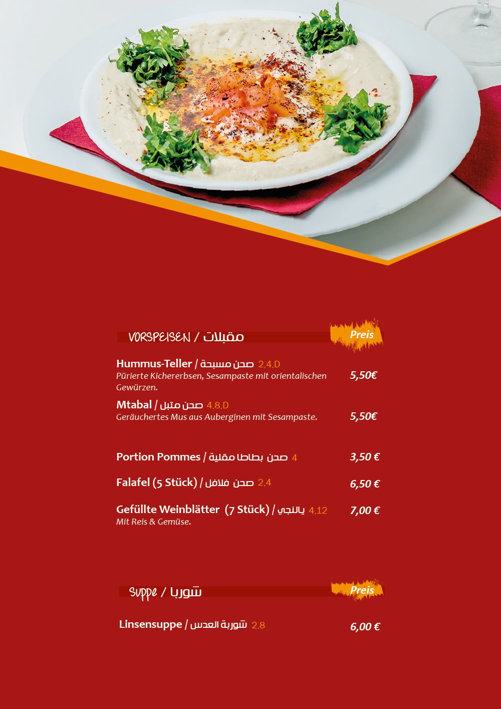 Dabei haben wir Gerichte für Fleischliebhaber, als auch für Vegetarier und Veganer. Wenn Sie arabisches Essen mögen, werden Sie Amal Damaskus lieben! Werfen Sie doch einen Blick in unsere Karte und überzeugen Sie sich selbst.